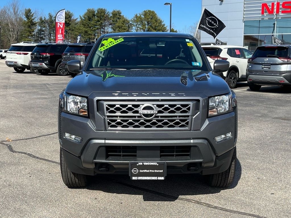 Gun Metallic 2024 Nissan Frontier SV 4WD 9-Speed Automatic with Overdrive 3.8L DI DOHC 24V V6 CARFAX One-Owner. Clean CARFAX. Tonneau Cover, 4WD, 120V Power Outlet in Bed, 120V Power Outlet in Rear Center Console, 17" Alloy Wheels, Apple CarPlay/Android Auto, Bed Under-Rail Lighting, Blind Spot Warning, Fender Premium Audio System w/10 Speakers, Front Halogen Fog Lights, Heated Front Seats, Heated Leather Steering Wheel, Heated Outside Mirrors, High Beam Assist (HBA), HVAC - Dual-Zone Front Auto A/C, I-Key w/Request Switches on O/S Handles, Illuminated Locking Glove Box, Intelligent Cruise Control, Lane Departure Warning System, Leather Shift Lever, Overhead Console Storage (Sunglass Holder), Rear Automatic Braking (RAB), Rear Cross Traffic Alert (RCTA), Rear Sonar System, Remote Engine Starter, Security system, Sliding Rear Window, Spray-In Bedliner, SV Convenience Package, Technology Package, Tow Package (T11), Tow/Haul Mode Switch, Trailer Hitch w/Wiring Harness, Utili-Track System.