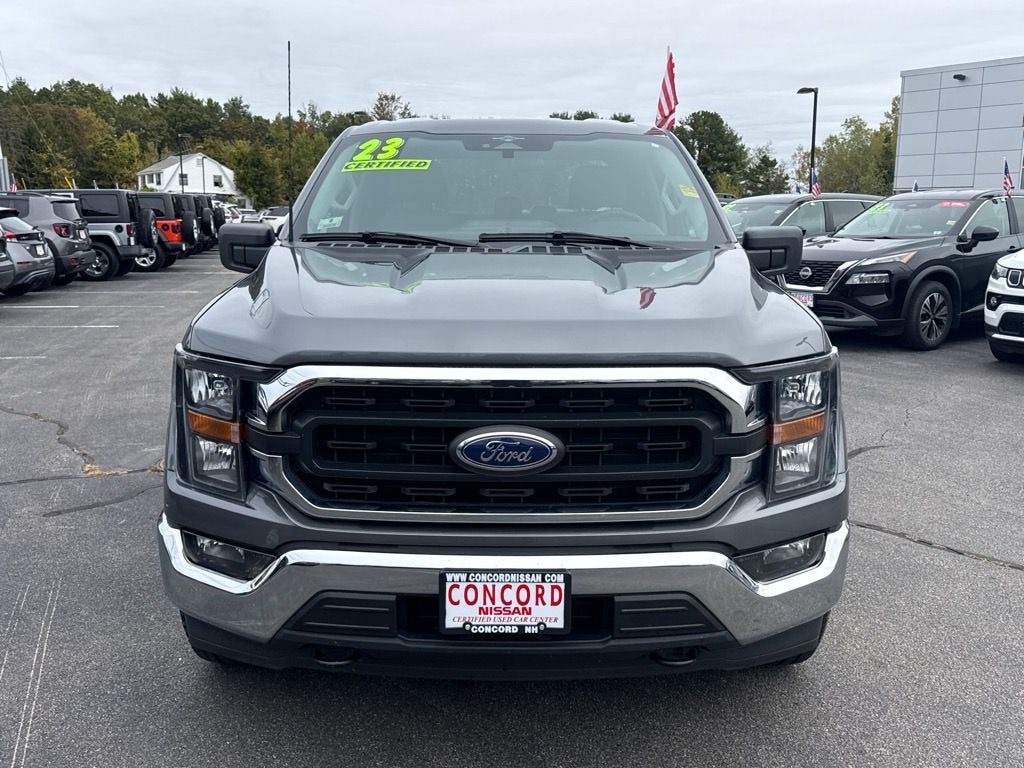 Gray Metallic 2023 Ford F-150 XLT 4WD 10-Speed Automatic 3.5L V6 EcoBoost CARFAX One-Owner. 4WD, Gray Metallic, Black W/Medium Dark Slate Cloth, 18" Silver Painted Aluminum Wheels, 8-Way Power Driver's Seat w/Power Lumbar, Bumpers: chrome, Electronic Stability Control, Exterior Parking Camera Rear, Front fog lights, Heated door mirrors, Illuminated entry, Low tire pressure warning, Power door mirrors, Power windows, Radio: AM/FM Stereo w/6 Speakers, Rear step bumper, Remote keyless entry, Security system, Steering wheel mounted audio controls, SYNC 4, Telescoping steering wheel, Tilt steering wheel, Traction control, Variably intermittent wipers, Wheels: 17" Silver Painted Aluminum.