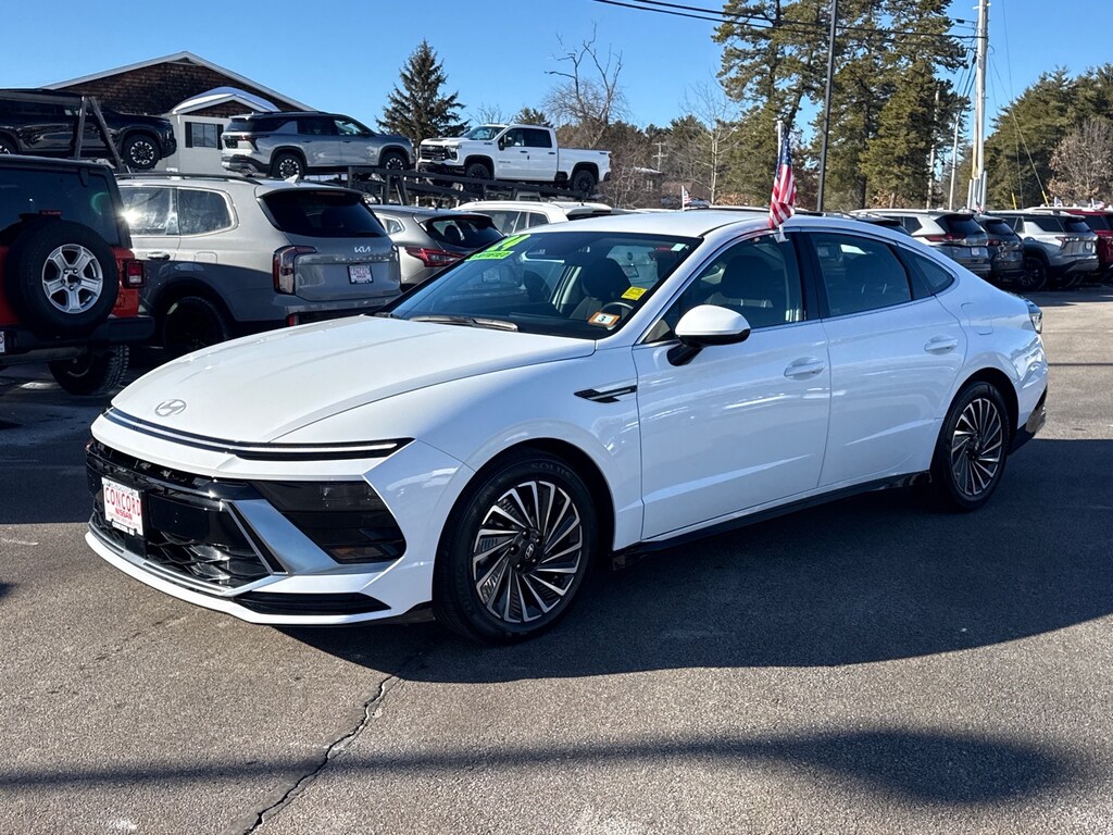 Serenity White 2024 Hyundai Sonata Hybrid SEL FWD 6-Speed Automatic with Shiftronic I4 CARFAX One-Owner. I4, 6-Speed Automatic with Shiftronic, FWD, Serenity White, Black Cloth.