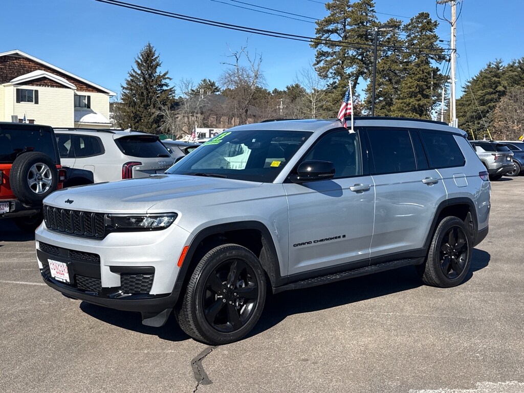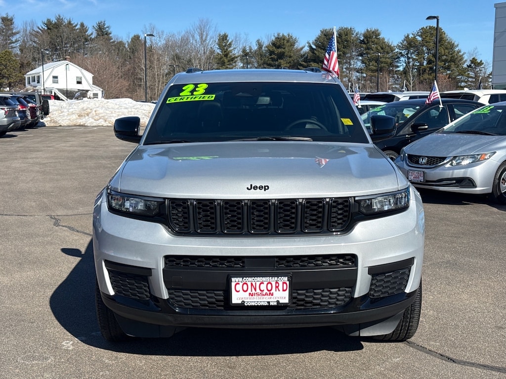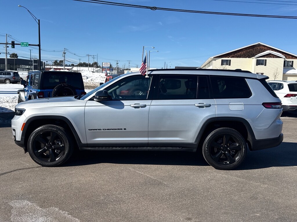 Silver Zynith 2023 Jeep Grand Cherokee L Altitude 4WD 8-Speed Automatic 3.6L V6 24V VVT CARFAX One-Owner. 115V Auxiliary Power Outlet, 3rd Row Charge-Only USB Ports, Altitude Appearance Package, Black Headliner, Capri Leatherette/Suede Seats, Delete Laredo Badge, Electronic Stability Control, Four wheel independent suspension, Gloss Black Exterior Accents, Heated Front Seats, Heated Steering Wheel, Molded In Color Black/Gloss Black Roof Rails, ParkView Rear Back-Up Camera, Power Liftgate, Power Sunroof (DISC), Quick Order Package 23B Altitude, Rain Sensitive Windshield Wipers, Remote Start System, Security system, Selectable Tire Fill Alert, Wheels: 18" x 8.0" Fully Painted Aluminum 1, Wireless Charging Pad.