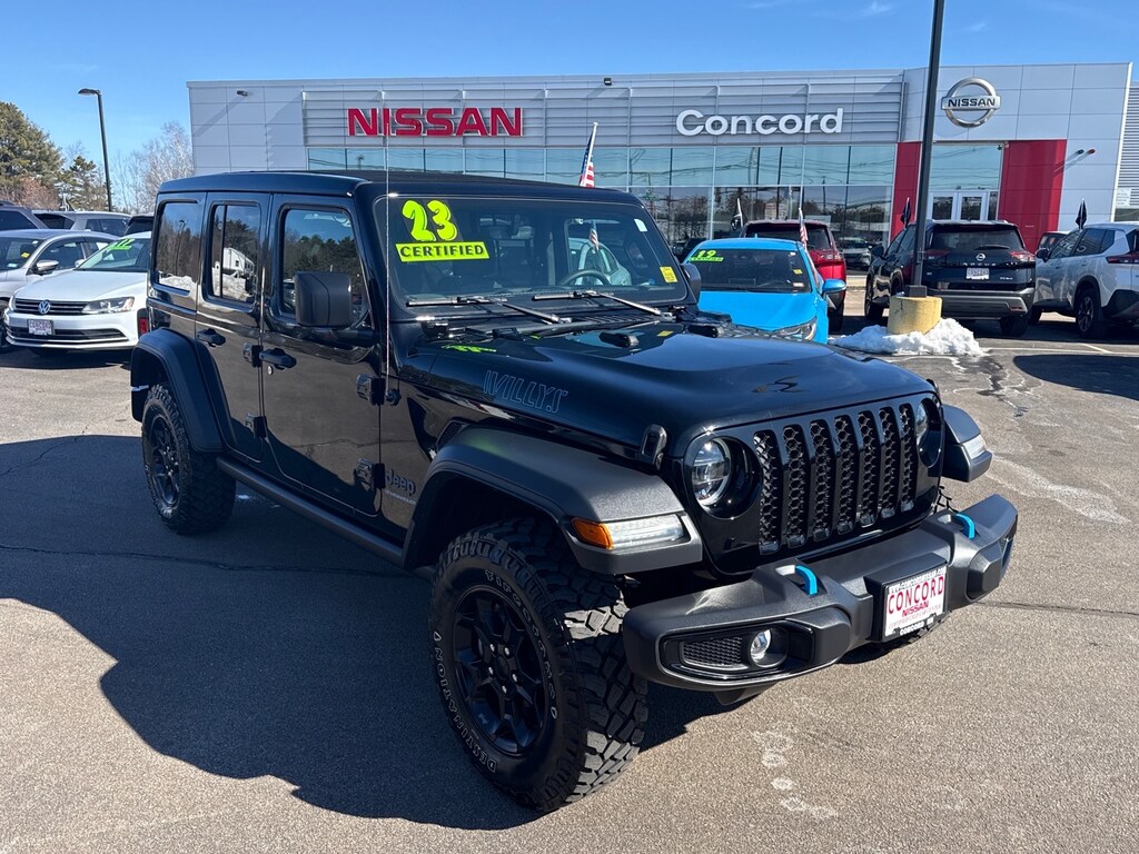 Black Clearcoat 2023 Jeep Wrangler Base 4xe Williy's 4WD 8-Speed Automatic 2.0L I4 DOHC CARFAX One-Owner. New Tires!, New Brakes, Fully Loaded, 2.0L I4 DOHC, 1-Year SiriusXM Guardian Trial, 115-Volt Auxiliary Power Outlet, 4G LTE Wi-Fi Hot Spot, 4xe 4-Wheel Drive Swing Gate Decal, 5-Year SiriusXM Traffic Service, 5-Year SiriusXM Travel Link Service, 8.4" Radio Group, 8.4" Touchscreen Display, 97 MPH Vehicle Max Speed Calibration, Anti-Spin Differential Rear Axle, Apple CarPlay, Apple CarPlay/Android Auto, Auto-Dimming Rear-View Mirror, Black Grille, Cold Weather Group, Console Bin Task Light, Convenience Group, Electronic Stability Control, Emergency/Assistance Call, For Details, Visit DriveUconnect.com, Front LED Fog Lamps, Google Android Auto, GPS Antenna Input, GPS Navigation, HD Radio, Heated Front Seats, Heated Steering Wheel, Integrated Center Stack Radio, Integrated Voice Command w/Bluetooth, LED Headlamp & Fog Lamp Group, LED Premium Reflector Headlamps, Media Hub - 2 USBs (Both Charge Only), Molded-In-Color Fender Flares (2-Piece), MOPAR All-Weather Floor Mats, Normal Duty Suspension, Off-Road Info Pages, Power Top Quarter Window Storage Bag, Quick Order Package 29W Willys, Radio: Uconnect 4C Nav w/8.4" Display, Rear Window Defroster, Rear Window Wiper/Washer, Remote Start System, Remote USB Port - Charge Only, Removable Rear Quarter Windows, Security system, SiriusXM Traffic Plus, SiriusXM Travel Link, Sky 1-Touch Power Top, Sun & Screen Package, Universal Garage Door Opener, USB Host Flip, Wheels: 17" x 7.5" Black Aluminum, Willys, Willys 4xe Hood Decal.