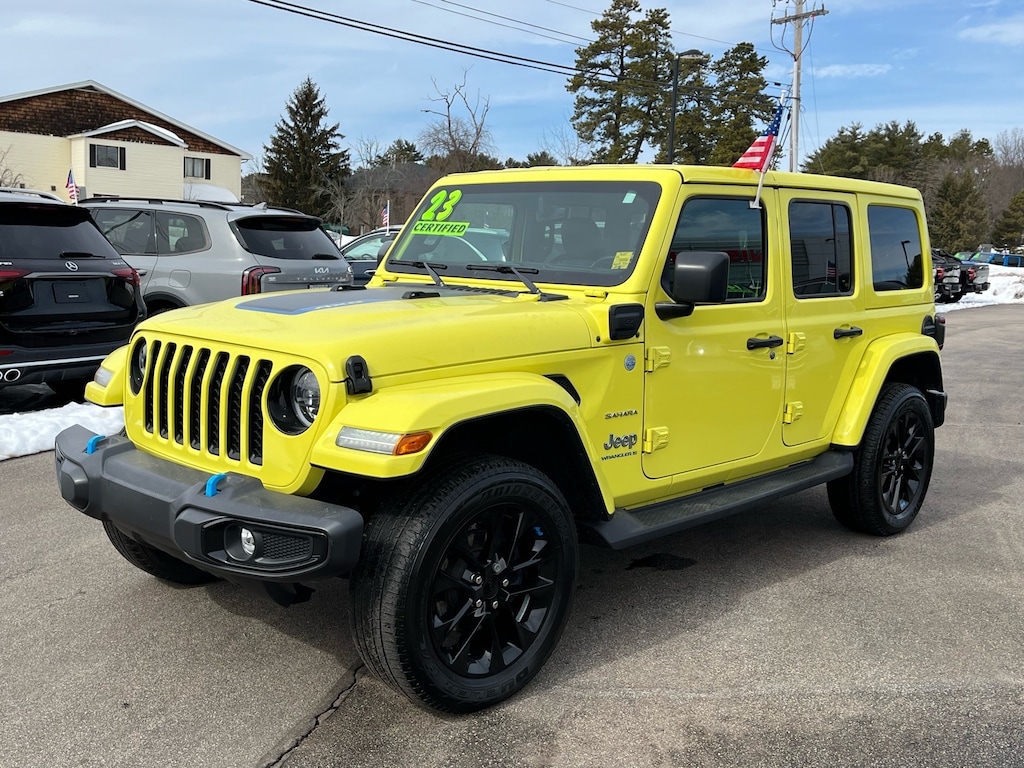 High Velocity Clearcoat 2023 Jeep Wrangler Sahara 4xe 4WD 8-Speed Automatic 2.0L I4 DOHC CARFAX One-Owner. New Tires!, 2.0L I4 DOHC, Apple CarPlay/Android Auto, Body Color 3-Piece Hard Top, Cold Weather Group, Freedom Panel Storage Bag, Heated Front Seats, Heated Steering Wheel, Navigation System, ParkView Rear Back-Up Camera, Premium McKinley Trimmed Seats, Radio: Uconnect 4C Nav w/8.4" Display, Rear Window Defroster, Rear Window Wiper/Washer, Remote keyless entry, Remote Start System, Security system, Side Steps, Sport Suspension, Wheels: 20" x 8" Fully Painted Aluminum.