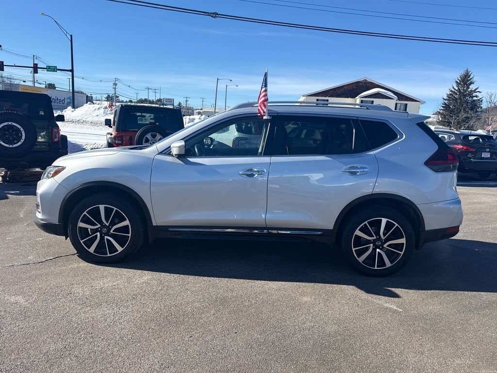 Brilliant Silver Metallic 2019 Nissan Rogue SL AWD CVT with Xtronic 2.5L I4 DOHC 16V Rogue SL, 4D Sport Utility, AWD, Brilliant Silver Metallic, Platinum Leather, 19" Aluminum Alloy Wheels, 9 Speakers, Blind Spot Warning, Bose Audio, Chrome Rear Bumper Protector, Electronic Stability Control, Front Bucket Seats, Heated door mirrors, Heated steering wheel, Illuminated entry, Low tire pressure warning, Lthr Appointed Seats/Special Quilted Lthr Inserts, Memory seat, Navigation System, NissanConnect featuring Apple CarPlay and Android Auto, Platinum Reserve Interior Package, Power driver seat, Power Liftgate, Radio: AM/FM/CD/AUX NissanConnect w/Navigation, Rear Parking Sensors, Remote keyless entry, Security system, Spoiler, Traction control, Turn signal indicator mirrors.