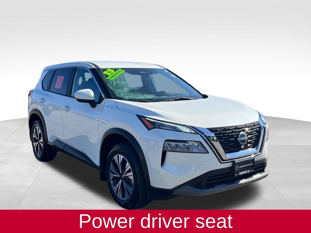 Pearl White Tricoat 2023 Nissan Rogue SV AWD CVT with Xtronic 1.5L I3 Turbocharged DOHC 12V LEV3-ULEV50 201hp CARFAX One-Owner. Clean CARFAX. AWD, 18" Aluminum Alloy Wheels, Chrome Rear Bumper Protector, Electronic Stability Control, Front Bucket Seats, Heated door mirrors, Illuminated entry, Low tire pressure warning, NissanConnect featuring Apple CarPlay and Android Auto, Power door mirrors, Power driver seat, Rear Parking Sensors, Remote keyless entry, Speed-Sensitive Wipers, Spoiler, Telescoping steering wheel, Tilt steering wheel, Traction control.